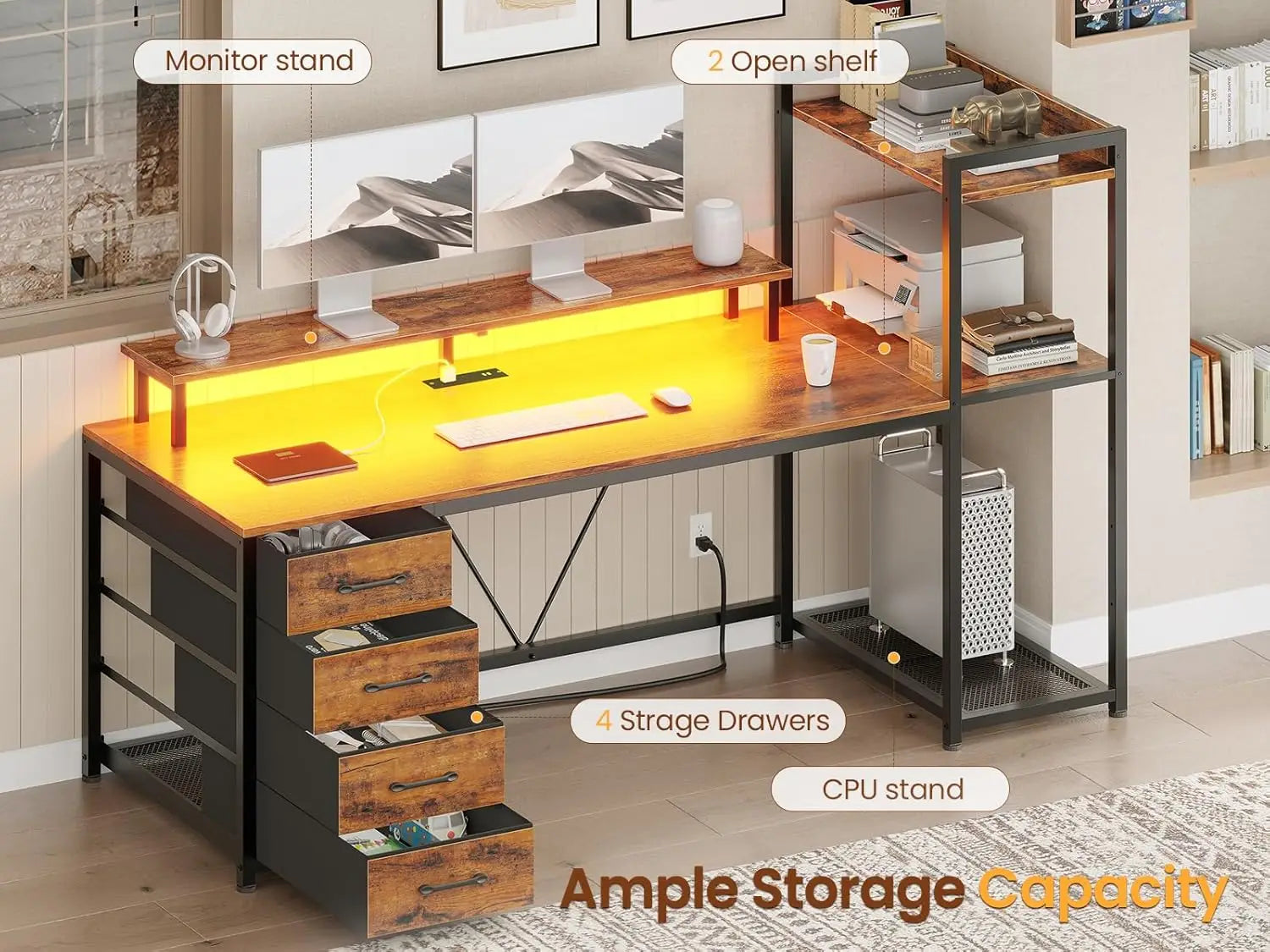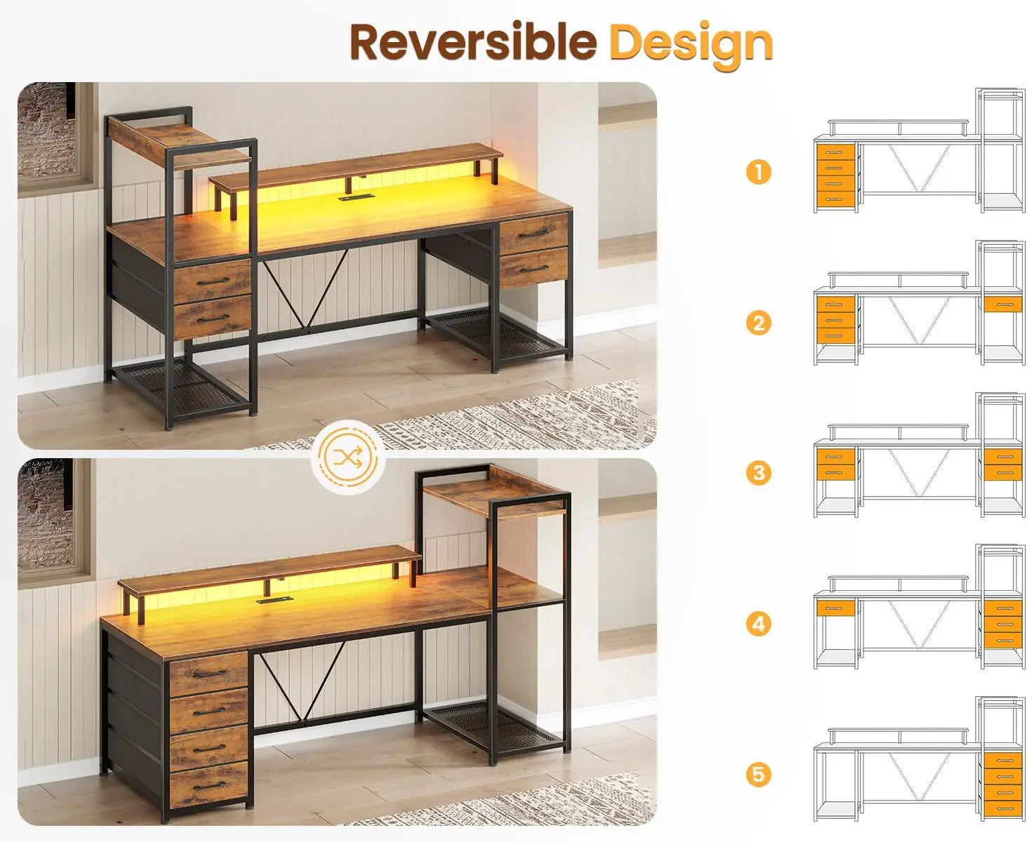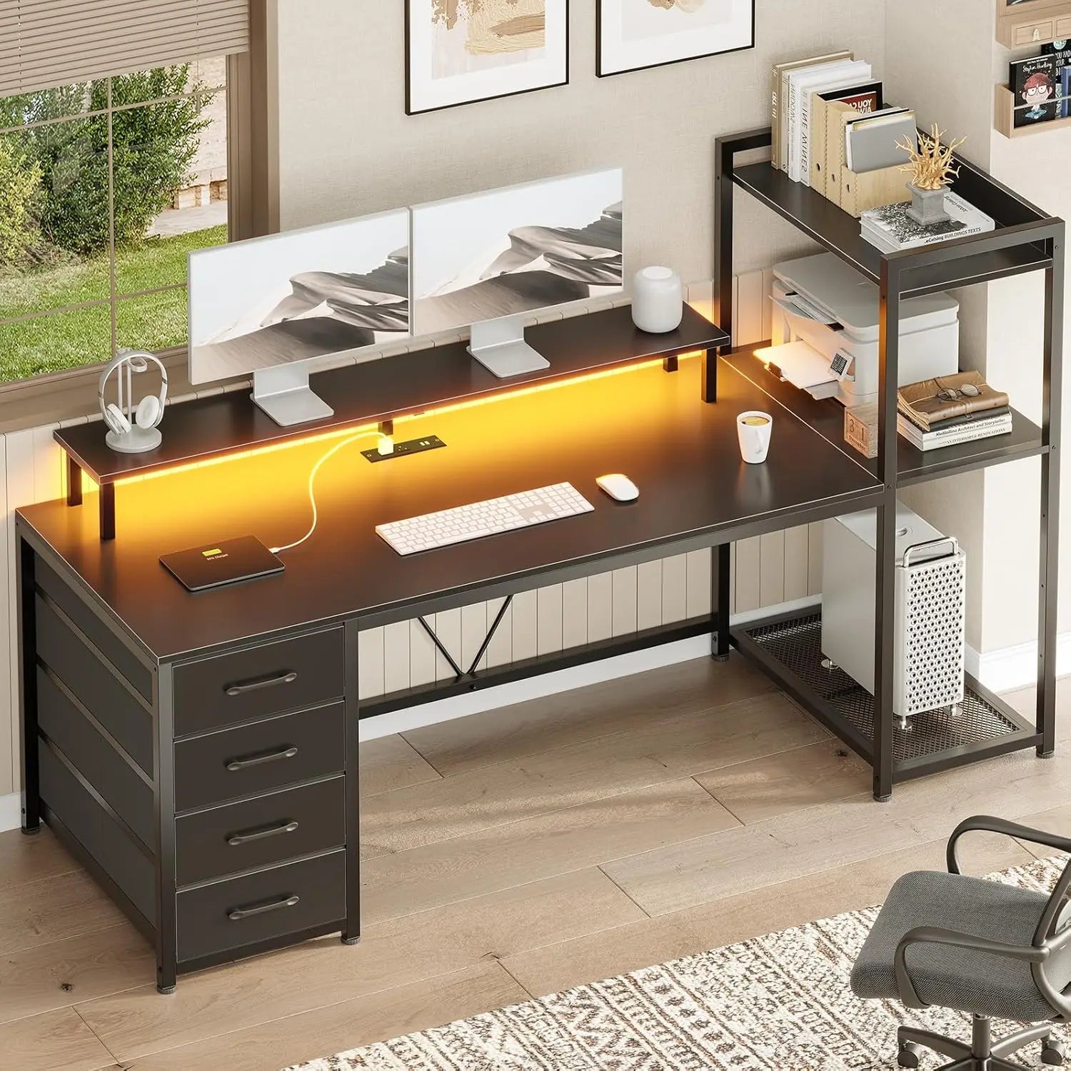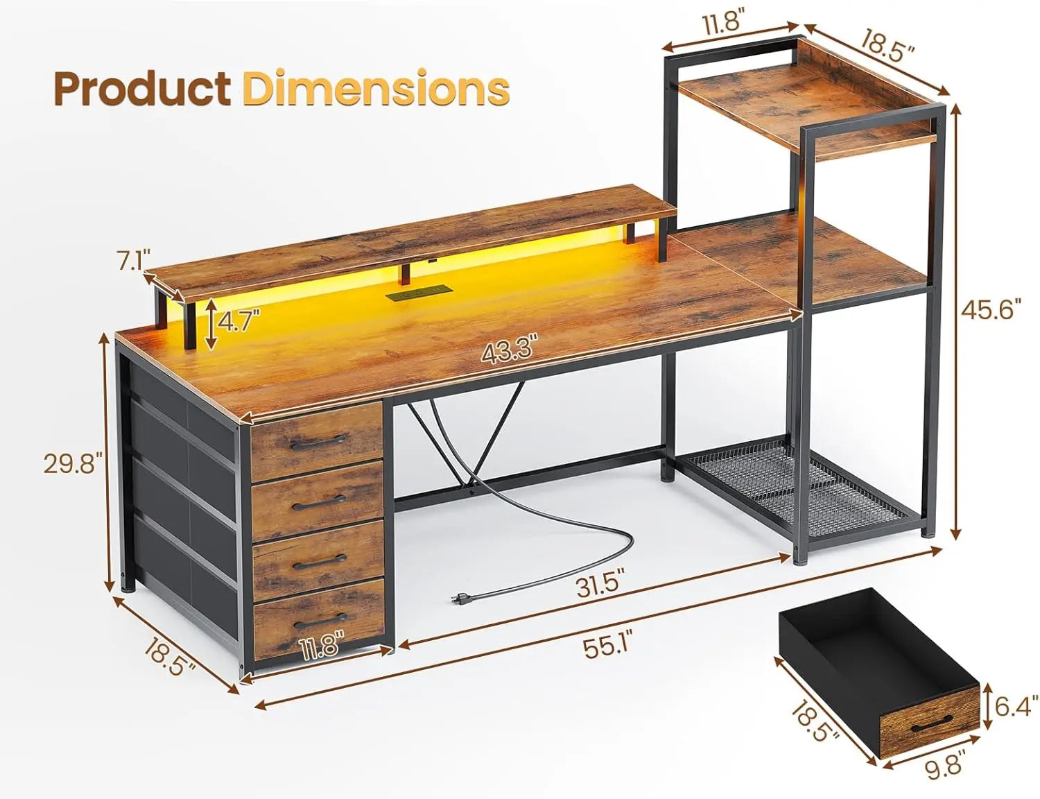 Spacious 55-inch desktop offers ample space for monitors, laptops, and accessories